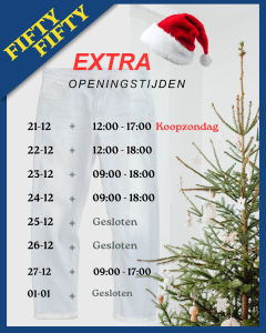 Gelijktijdig met een flinke verbouwing in 2008 werd het assortiment fors uitgebreid. ,,Klanten hebben nu keus uit wel vijfentwintig modellen in zes lengtes”, vertelt eigenaresse Corry. ,,We hebben nu acht merken spijkerbroeken”, vult levensgezel Anne-Heerke aan. Moeiteloos somt hij de beschikbare merken op, zoals Cars, M.O.D., Brams Paris en Place du Jour. Iedere klant slaagt bij Fifty-Fifty: ,,De maten lopen van 24 tot 54.”